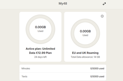 We’ve also updated your My48 dashboard to include monitoring for your call and SMS allowances. Now, you can easily keep an eye on all aspects of your plan, ensuring you have full control and visibility over your usage.